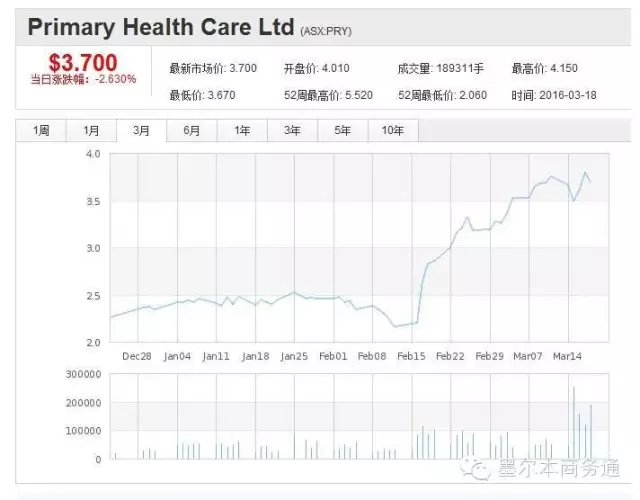 據悉,PRY 醫療公司主要從事醫療及輔助醫療服務,涉及醫療中心運營、病理學研究、醫療影像服務等業務,并擁有日間手術業務。該醫療集團在全澳各地擁有2380個營業點,包括71個醫療中心。PRY中期財報顯示,公司前半財年(2015年7月至12月)創收8.35億澳元,凈利潤6860萬澳元。