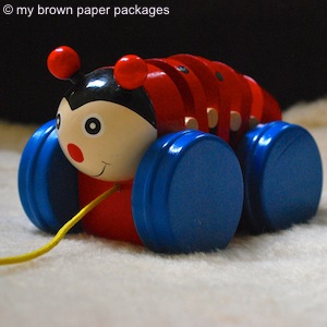 We love wooden toys like this pull along ladybug.