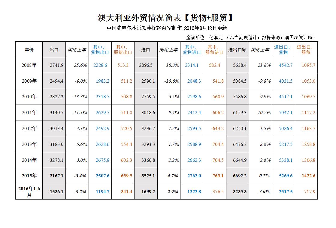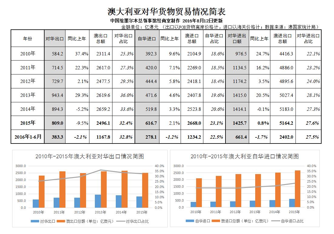8月初,澳大利亞國家統計局公布最新貿易數據,中國駐墨爾本總領館經濟商務室對其進行梳理統計,并制作數張圖表,供業界參考。
