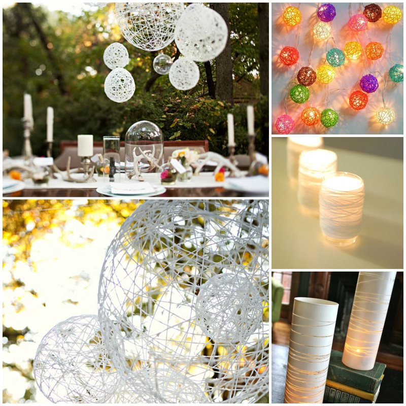 Light up your Bakers Twine and make some simple lanterns to dazzle your friends. They are a whole lot easier than they look. Or keep it simple and wrap some votive candle holders or use it to make a nice pattern on the outside of tall glass candle holders.