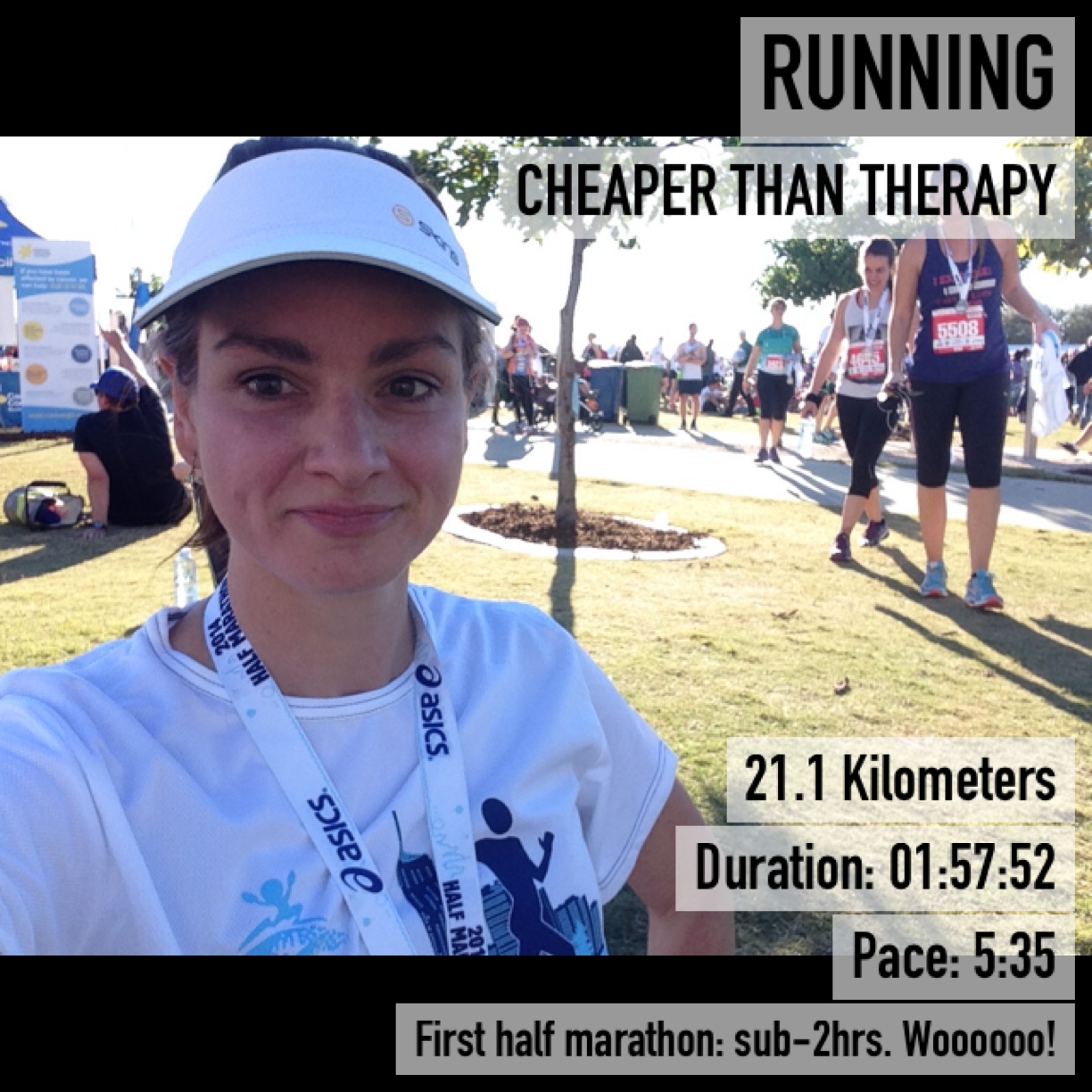 I have a love/hate relationship with running, but we’re in an up cycle at the moment. Running helped me recover from postnatal depression in 2011, and it has helped me keep anxiety at bay ever since then. I ran my first (and second) half marathon last year, and am training for another one later this year. I will have to do a marathon at least once just to tick it off my list. That will be a big day. When I let myself take some time off running, I can feel anxiety tightening its grip on my brain and I know I have to get out there before it goes any further. Anxiety tries to convince me that running is too hard and I have to work hard to not let myself believe it. Honestly, it’s a circus in my head! But running, for me, is the key to a healthy, happy life.