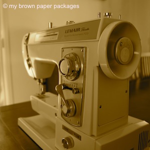 This is my sewing machine and she is one of my favourite things. Isn’t she beautiful? She isn’t technically mine I suppose. She is on permanent loan from my dear Grandmother. I think she probably got sick of me coming over to borrow it all of the time and just gave it to me. So on the understanding that she can come over to use it whenever she likes, it now lives at my house.