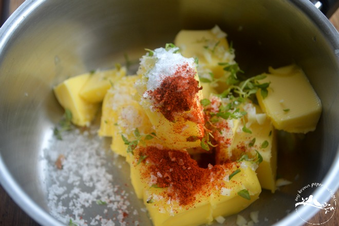 - Place butter, thyme, garlic and paprika in a small saucepan and cook over a low heat until butter is melted. Stir in your salt, and season with pepper.
