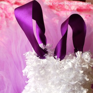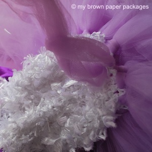 To finish it off I used a double-sided satin ribbon around the waist and made the length of the ribbon tails the same as the dress. Remember to allow enough length to tie the bow. This also helps hide the tulle joins.