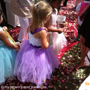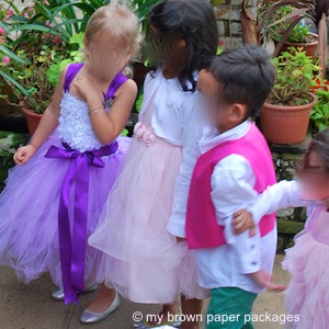 My daughter found the dress to be a bit itchy and to avoid her undressing mid-ceremony I made a simple slip for her to wear underneath. This also solved the problem of having to wear tights because tulle is see through and the strips will part leaving one little bottom sticking out for all to see. And while their undies are very pretty I think it is best to teach our girls some modesty. So a slip, or some tights or bike pants are needed.