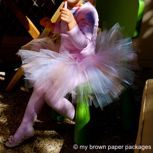 After the party the tutu’s have been used for ballet and just because dress up days at home. You can see that the tulle becomes a little scrunched and ruffled as it is used but you can comb it out straight with your hands if you want to.