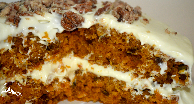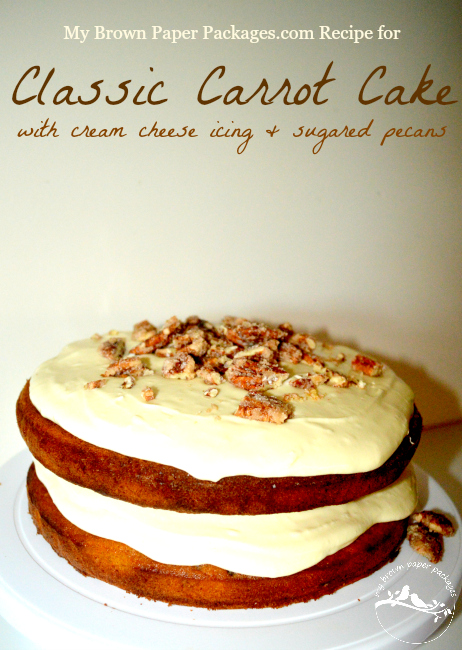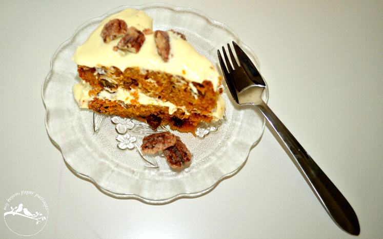 Every birthday I offer my husband the choice of whatever cake he would like for his birthday. Previously, he asked for this baked white chocolate cheesecake which I made with pistachios and a pomegranate syrup and a chocolate collar. It was pretty amazing. Anyway, this birthday he requested a carrot cake. So, not being one to do things by halves, I made a layered carrot cake with a cream cheese icing and sugared pecans.