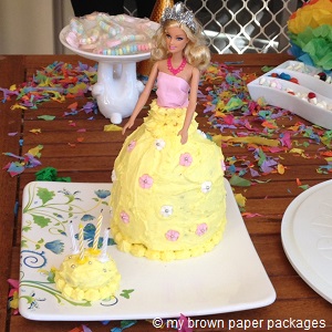 When my daughter saw her princess dolly varden cake and her face lit up with wonder and she smiled at me and told me thank you, I melted. It was all worth it. She loved her cake and I was happy.