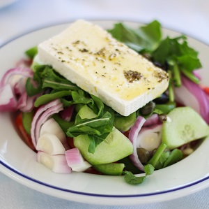 Home grown, organic food like a fresh Greek salad