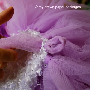 For this dress I was attaching the tulle to the crochet bodice rather than elastic like the skirts.