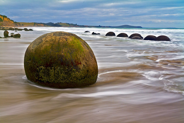 I also spied these Moeraki Boulders on the Otago Coast about 4 hours south of Christchurch. There are a group of these very large spherical stones on the beach that originally formed 60 million years ago in ancient sea floor sediments.