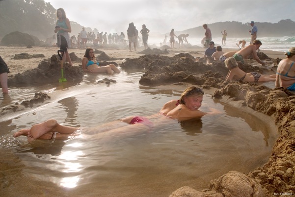The best time to visit is within 2 hours either side of low tide when hot water bubbles up out of the sand and you can dig your own thermal spa in the beach.