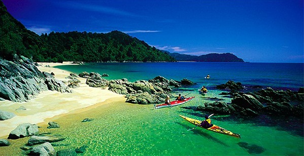 The Abel Tasman National Park is New Zealand’s only coastal national park and is popular for cruising its clear turquoise water on a sea kayak and lazing on the golden sandy beaches after hiking over limestone cliffs and through the lush green bush. It takes 3 to 5 days to hike the entire 53kms of the track or you can do shorter sections and be collected by a water taxi.